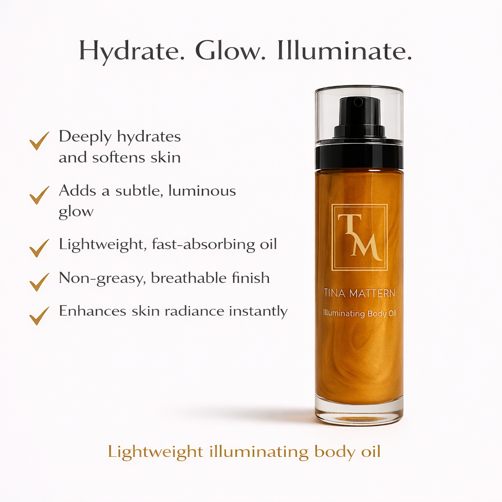Enhance your skin’s natural beauty with Tina Mattern Body Oil. This lightweight, hydrating oil is infused with Vitamin E, Aloe, and natural minerals to provide a subtle shimmer that leaves your skin glowing. The non-greasy formula absorbs quickly, making it perfect for everyday use or special occasions when you want to enhance your skin’s radiance.