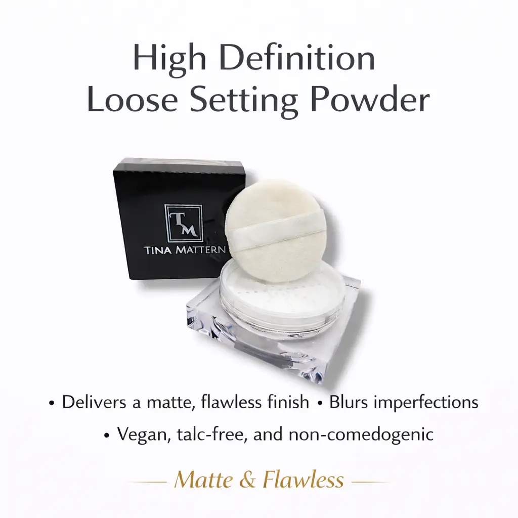 Achieve a flawless, shine-free complexion with Tina Mattern Loose Setting Powder. This finely milled, lightweight powder provides a velvety, translucent finish that blurs imperfections and delivers a natural, airbrushed look. It is perfect for setting foundation, baking concealer, or finishing any makeup. With this powder, you can minimize the appearance of pores, fine lines, and wrinkles, giving you a photo-ready complexion that lasts all day.