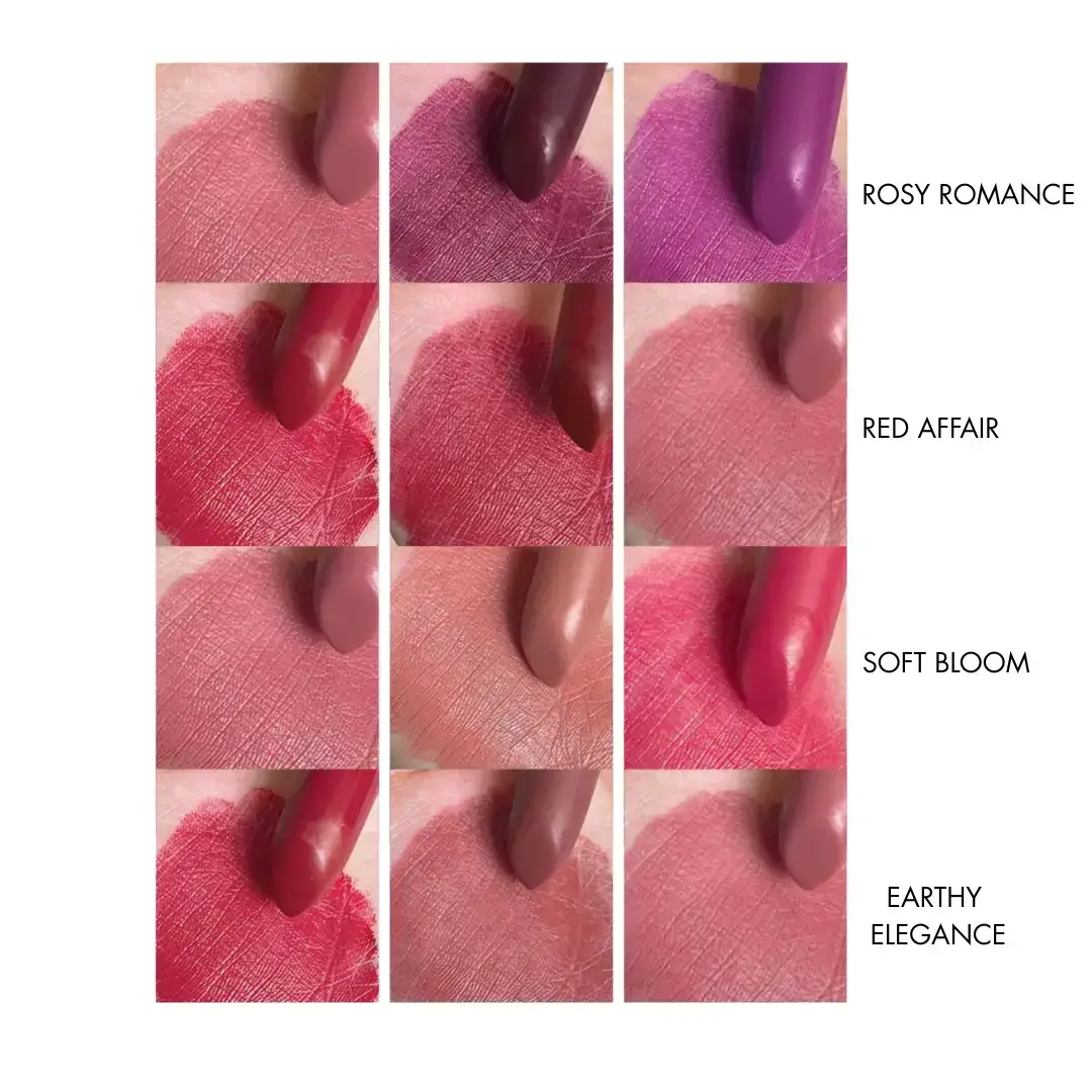 Rosy Romance, Red Affair, Soft Bloom, Earthy Elegance